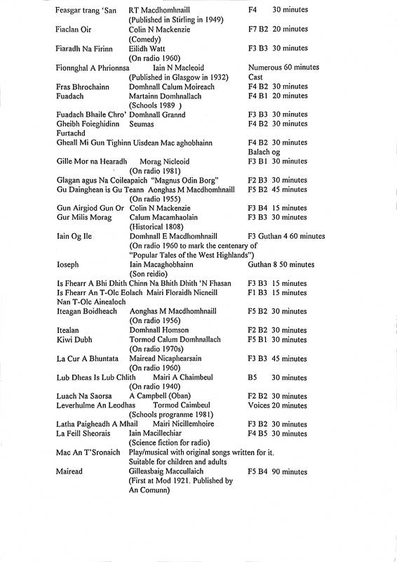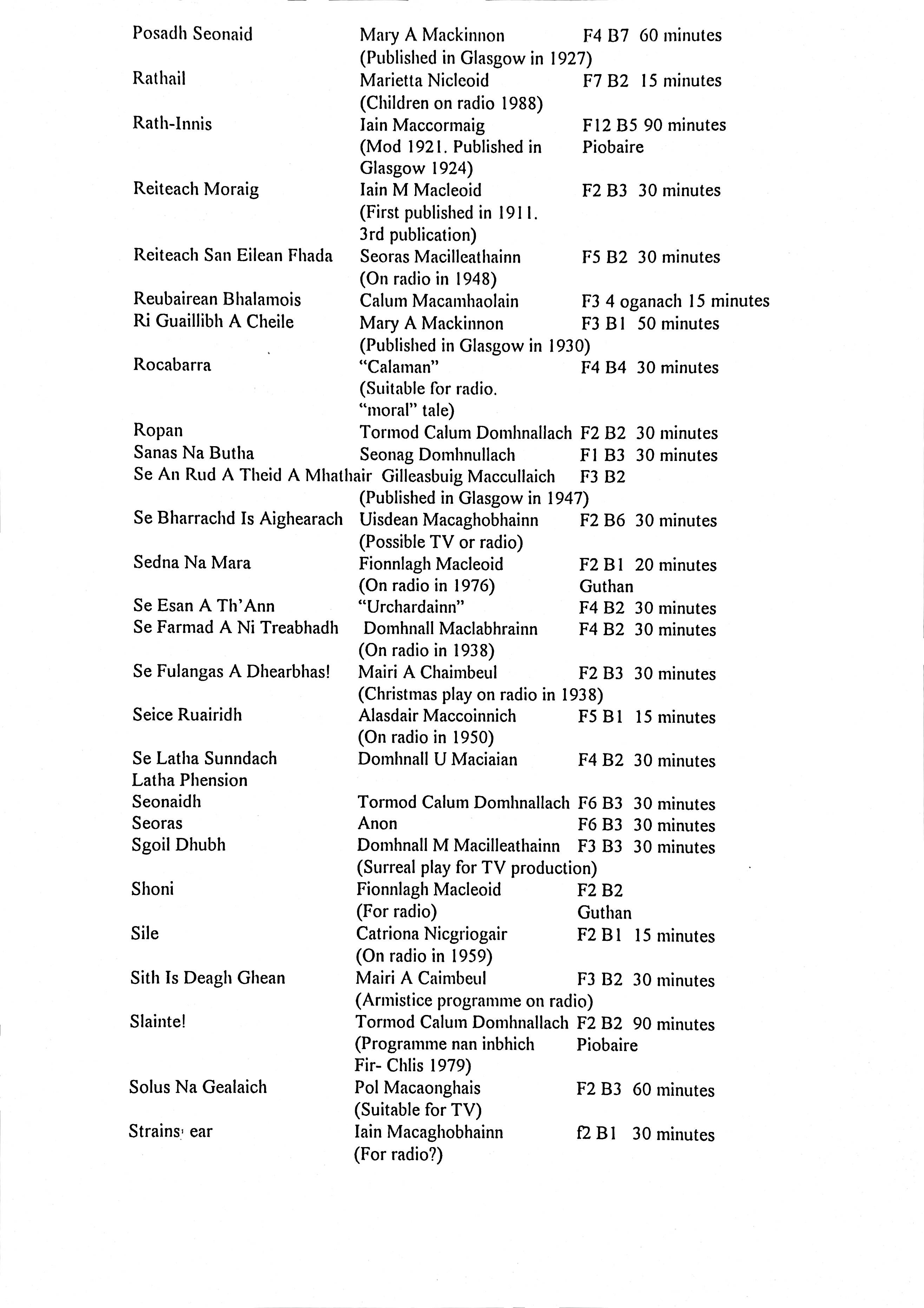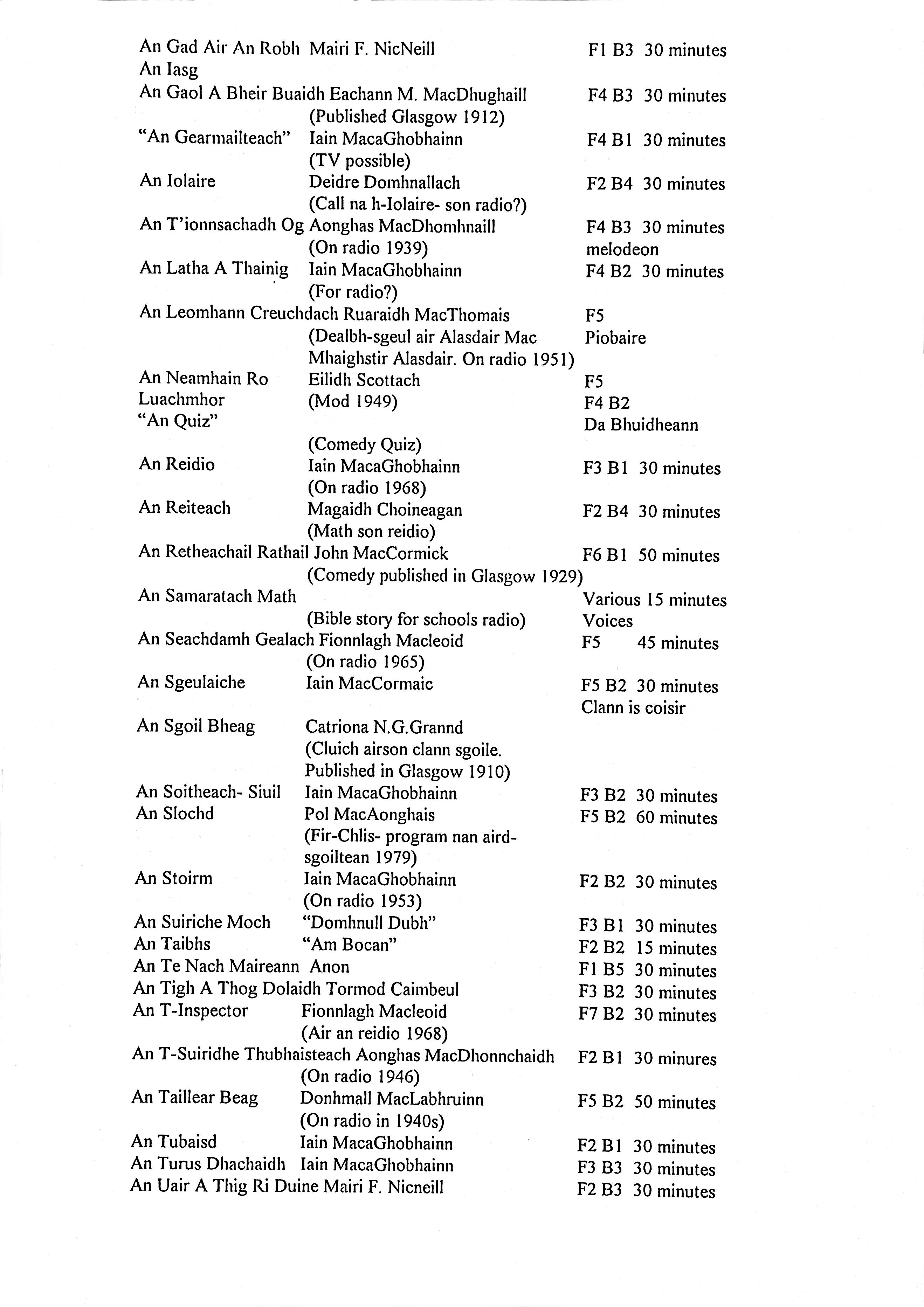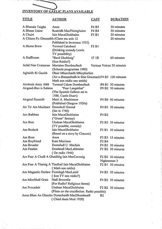 Printed Inventory of Gaelic Plays