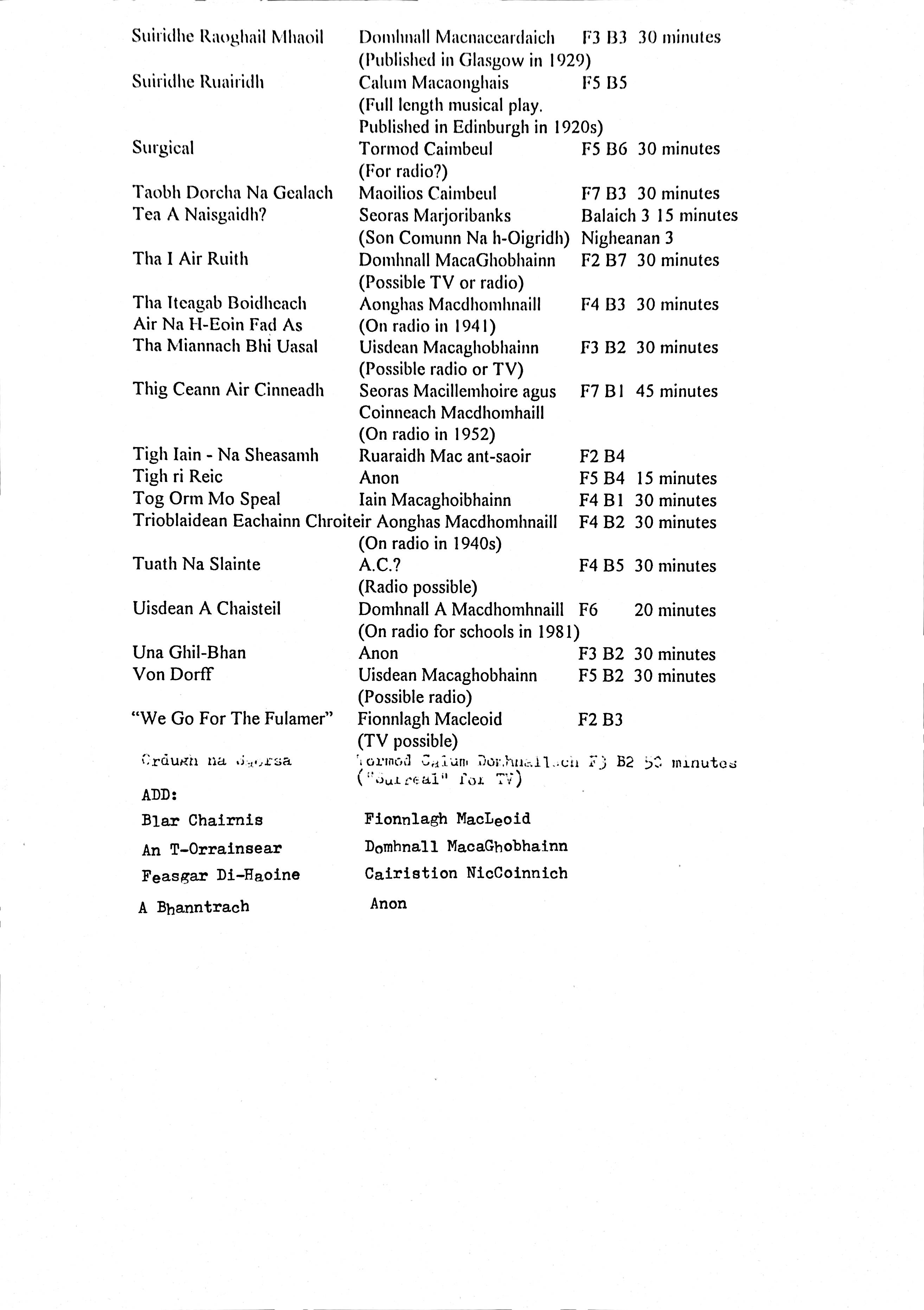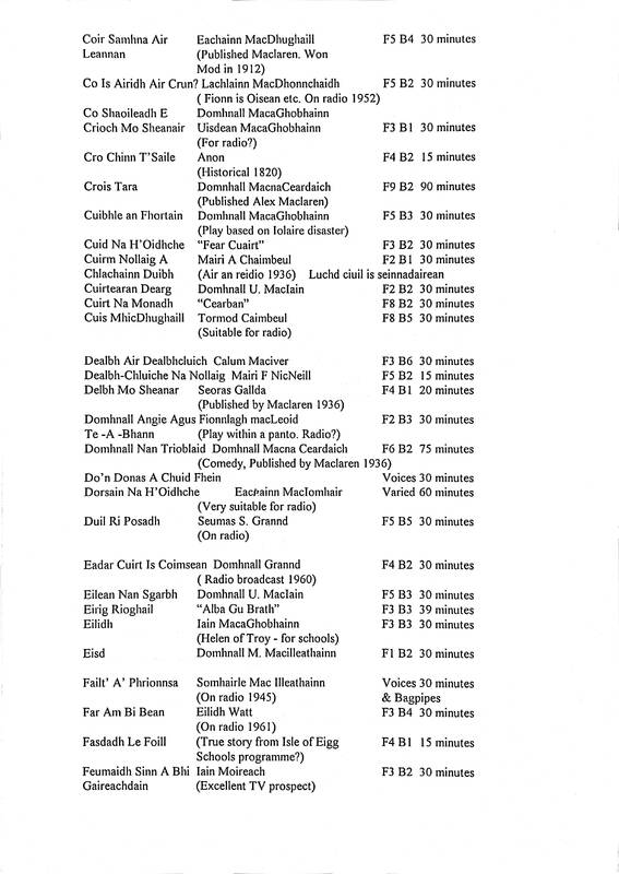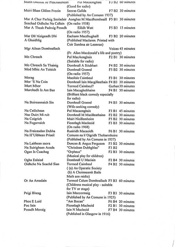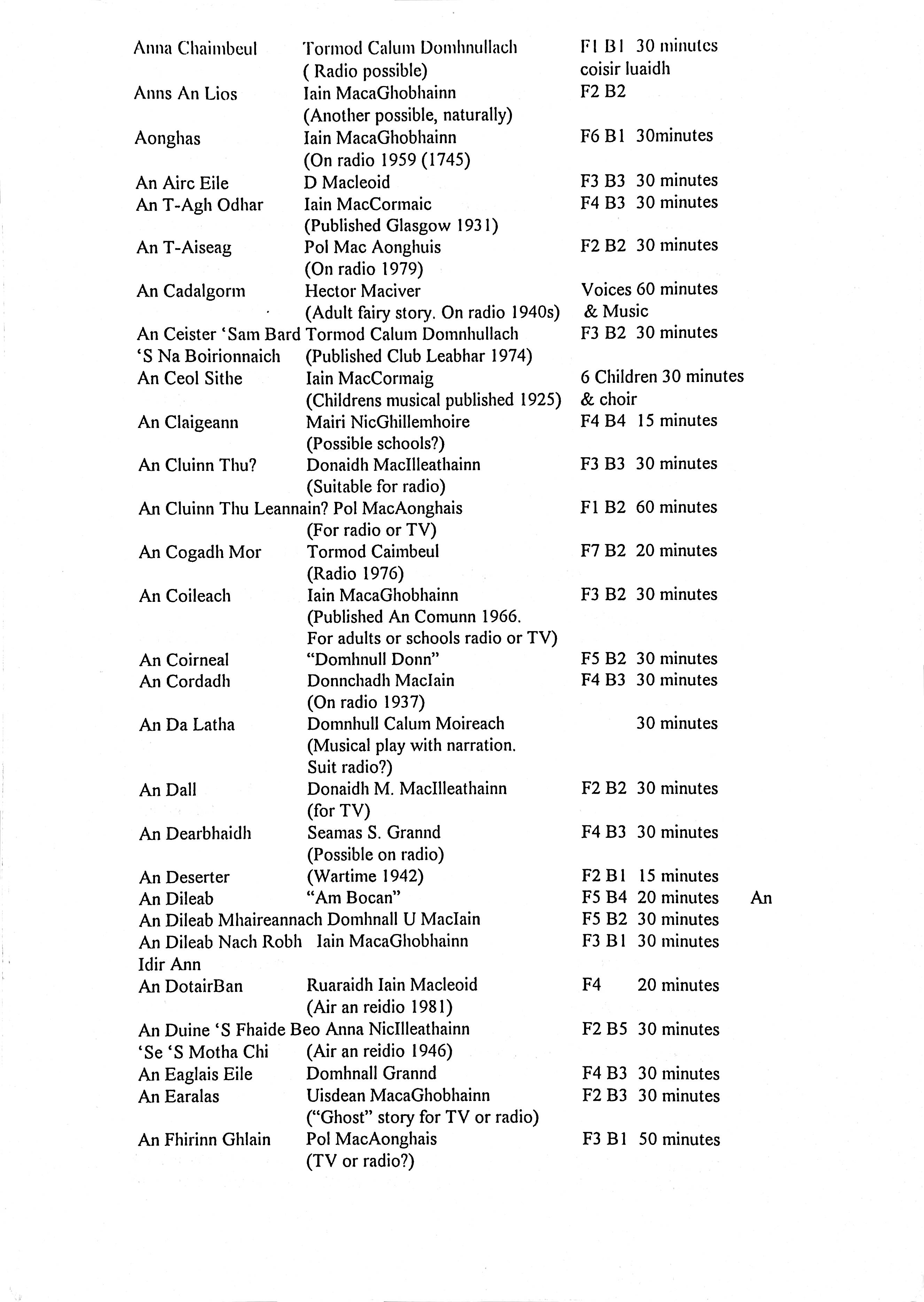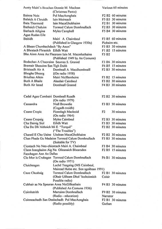 Printed Inventory of Gaelic Plays